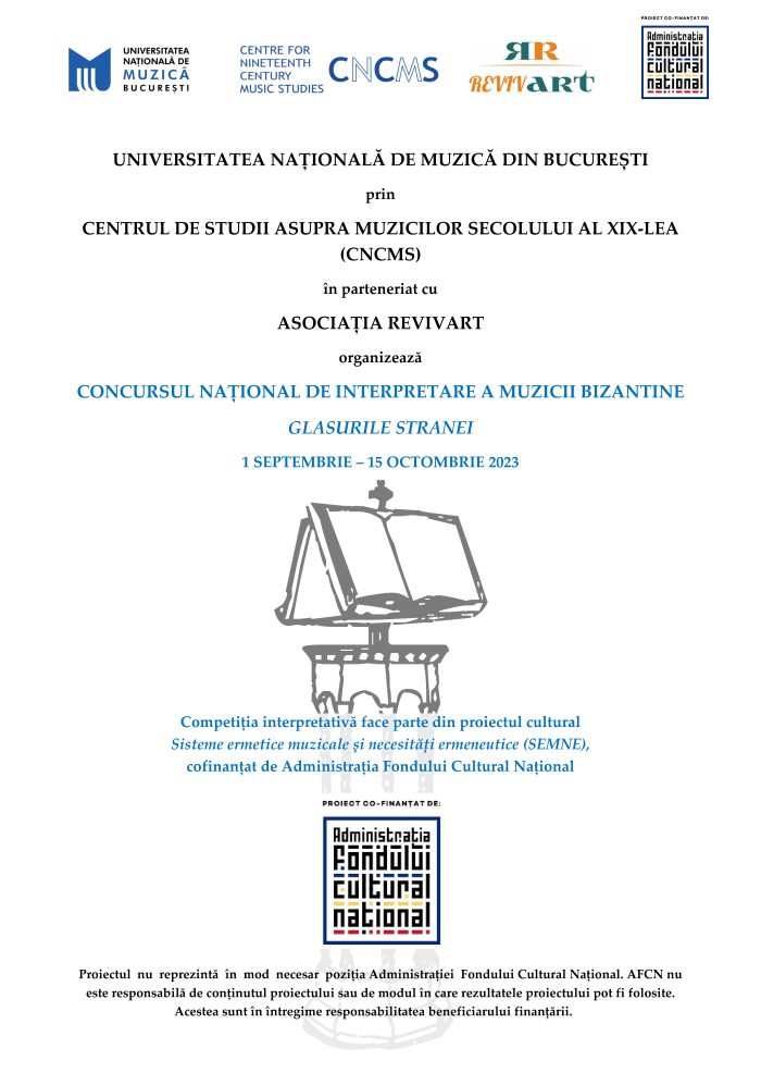 October 15, 2023🏛️ The National University of Music in Bucharest and REVIVART Association are launching the National Contest of Byzantine Music Performance “Voices of the Lectern”, organized within the cultural project “Hermetic Musical Systems and Hermeneutical Necessities” co-financed by the Administration of the National Cultural Fund (AFCN).